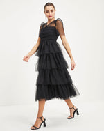 Night At The Opera Tulle Tiered Polka Dot Maxi Dress
